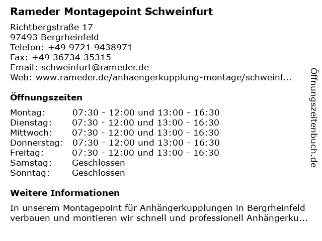 Branchen & Suchbegriffe zu Rameder Montagepoint Schweinfurt:anhängerkupplung, anhängerzugvorrichtung, dachbox, dachträger, einbau, elektrosatz, fahrradträger, montage, montagepoint, rameder, skibox, werkstatt |