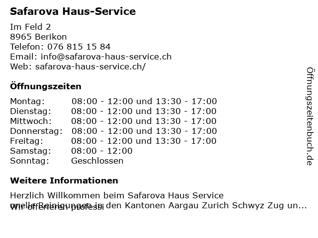 Hinweis: Herzlich Willkommen beim Safarova Haus Service