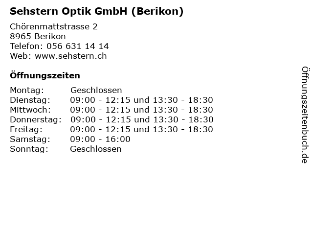 Branchen & Suchbegriffe zu Sehstern Optik GmbH (Berikon):berikon, optik, optometrie, sehstern |