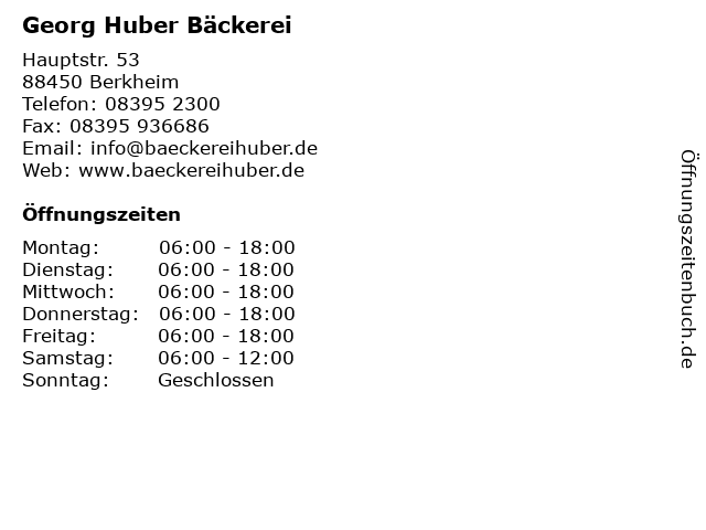 | Öffnungszeiten Georg Huber Bäckerei in Berkheim anzeigen | |