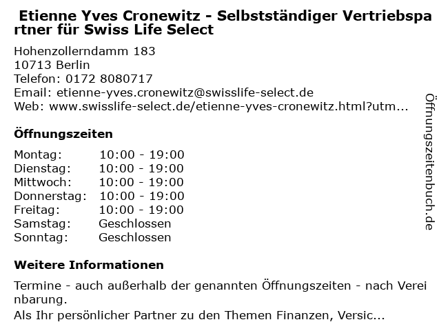Branchen & Suchbegriffe zu Etienne Yves Cronewitz - Selbstständiger Vertriebspartner für Swiss Life Select:berufshaftpflichtversicherung, berufsunfähigkeitsversicherung, cronewitz, etienne, finanzplanung, gebäude- und hausratsversicherung, investmentservice, lebensversicherung, life, mietrechtsschutzversicherung, pflegeversicherung, selbstständiger, select, swiss, versicherungsberater, vertriebspartner, yves |