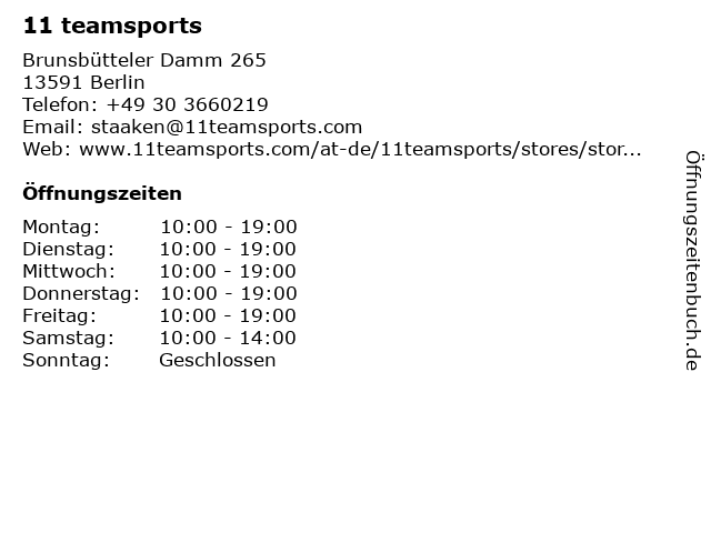 | Öffnungszeiten 11 teamsports in Berlin anzeigen | |