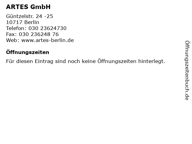 | Öffnungszeiten ARTES GmbH in Berlin anzeigen | |
