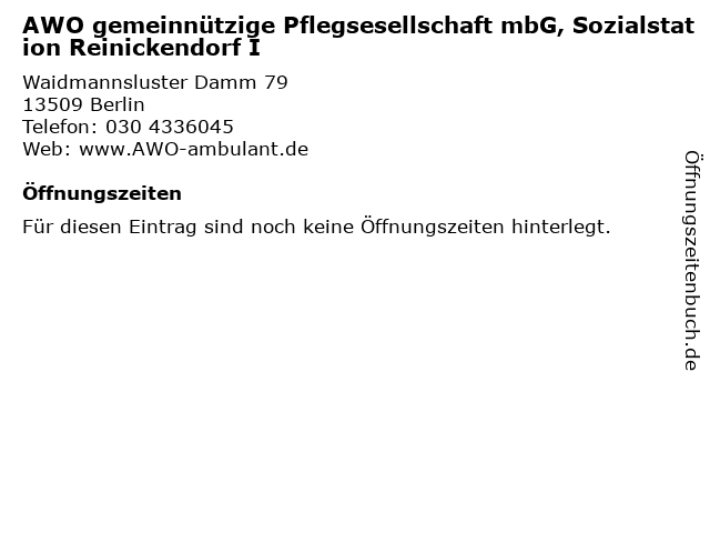 | AWO gemeinnützige Pflegsesellschaft mbG, Sozialstation Reinickendorf I anrufen | |