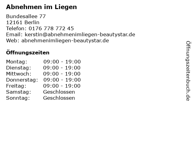 | Öffnungszeiten Abnehmen im Liegen in Berlin anzeigen | |