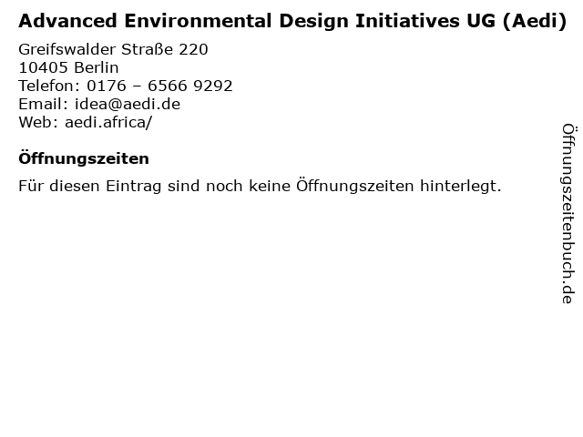 | Advanced Environmental Design Initiatives UG (Aedi) anrufen | |