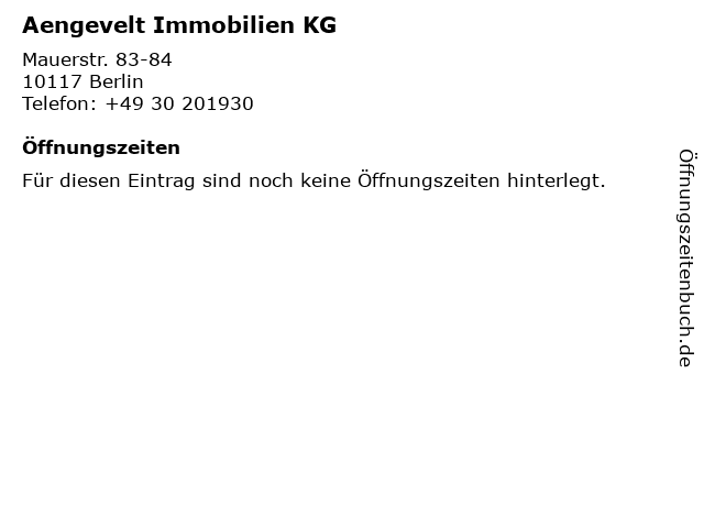 | Öffnungszeiten Aengevelt Immobilien KG in Berlin anzeigen | |