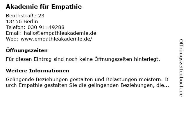 | Öffnungszeiten Akademie für Empathie in Berlin anzeigen | |
