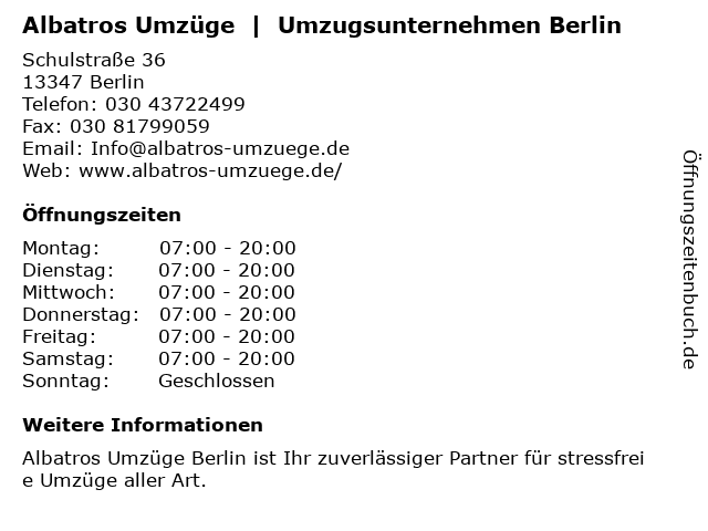 Branchen & Suchbegriffe zu Albatros Umzüge | Umzugsunternehmen Berlin:albatros, haushaltsauflösungsdienst, transportunternehmen, umzugsunternehmen, umzüge |