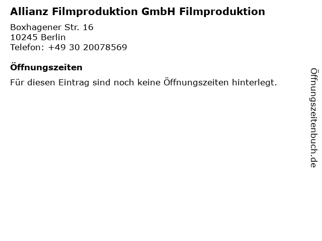 | Allianz Filmproduktion GmbH Filmproduktion anrufen | |