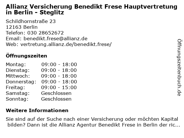 Branchen & Suchbegriffe zu Allianz Versicherung Benedikt Frese Hauptvertretung in Berlin - Steglitz:allianz, altersvorsorge, autoversicherung, benedikt, berufshaftpflichtversicherung, berufsunfähigkeitsversicherung, frese, gebäude- und hausratsversicherung, gewerbeversicherung, hauptvertretung, lebensversicherung, pflegeversicherung, steglitz, versicherung |