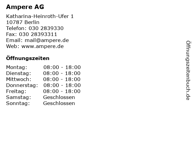 | Öffnungszeiten Ampere AG in Berlin anzeigen | |