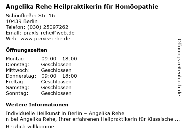 1 Gemeinschaftspraxis Angelika Theile Heilpraktiker (Entfernung: 0,42 km) Rhinowerstrasse 8, 10437 Berlin 6 |