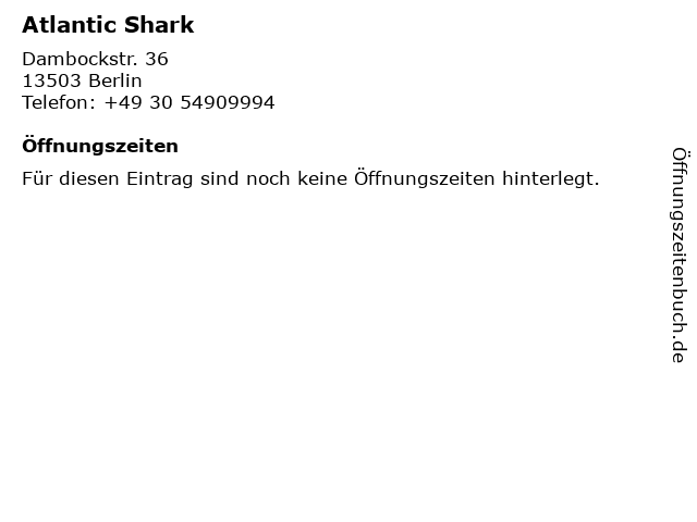 | Öffnungszeiten Atlantic Shark in Berlin anzeigen | |