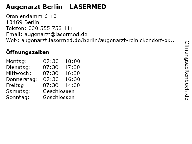 | Öffnungszeiten Augenarzt Berlin - LASERMED in Berlin anzeigen | |