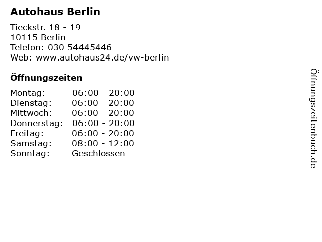 | Öffnungszeiten Autohaus Berlin in Berlin anzeigen | |