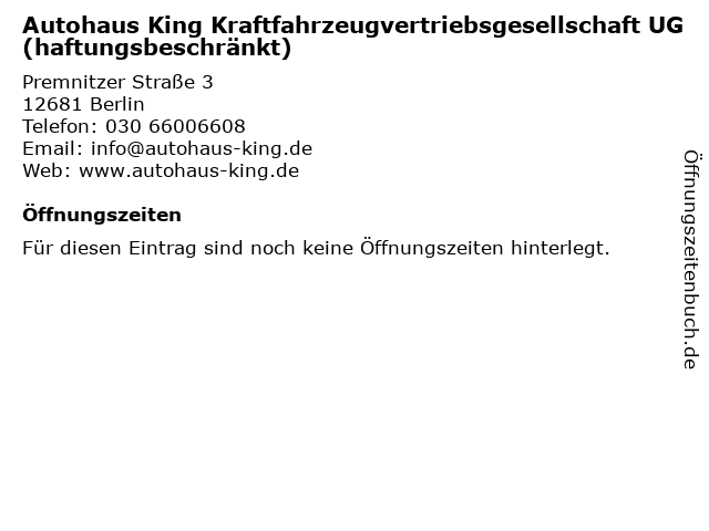| Autohaus King Kraftfahrzeugvertriebsgesellschaft UG (haftungsbeschränkt) anrufen | |