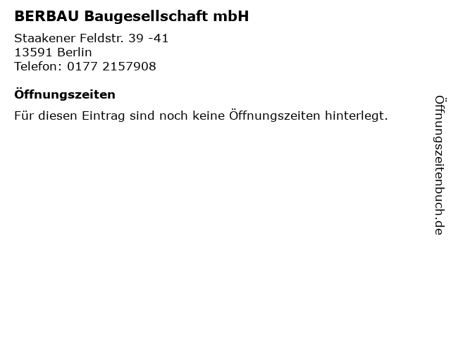 | Öffnungszeiten BERBAU Baugesellschaft mbH in Berlin anzeigen | |