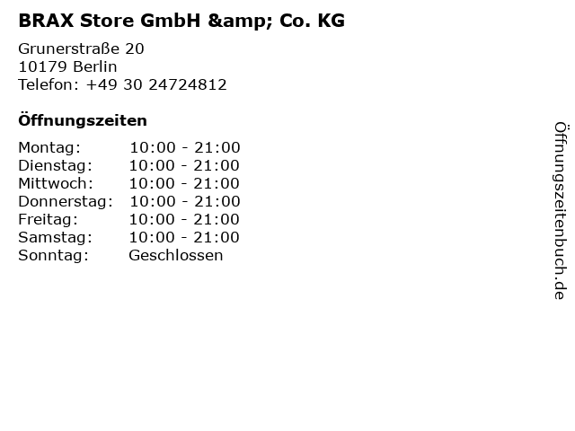 | Öffnungszeiten BRAX Store GmbH & Co. KG in Berlin anzeigen | |