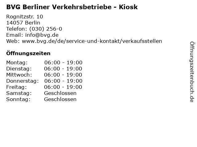 2 BVG Berliner Verkehrsbetriebe - Kiosk (Entfernung: 4,17 km) Charlottenburger Chaussee -, 13597 Berlin 6 |