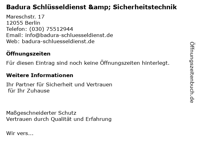 | Badura Schlüsseldienst & Sicherheitstechnik anrufen | |
