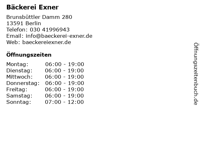 | Öffnungszeiten Bäckerei Exner in Berlin anzeigen | |