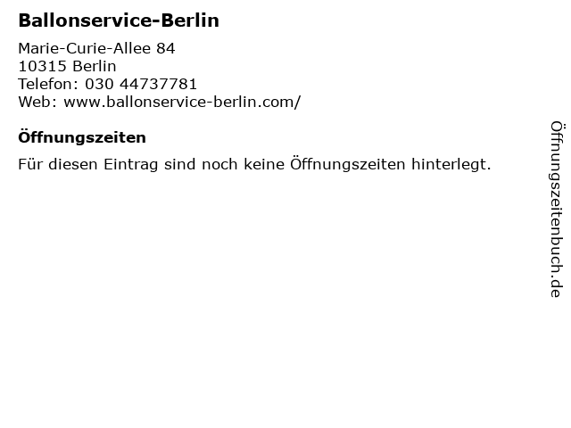 | Öffnungszeiten Ballonservice-Berlin in Berlin anzeigen | |