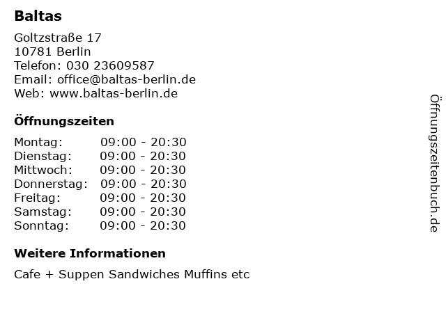 | Öffnungszeiten Baltas in Berlin anzeigen | |