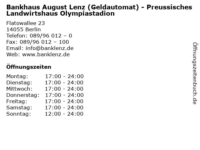 Branchen & Suchbegriffe zu Bankhaus August Lenz (Geldautomat) - Preussisches Landwirtshaus Olympiastadion:august, bankhaus, geldautomat, landwirtshaus, lenz, olympiastadion, preussisches |