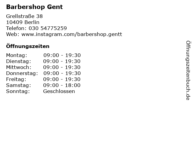 | Telefonnummer Barbershop Gent in Berlin (030 54775259) anrufen | |