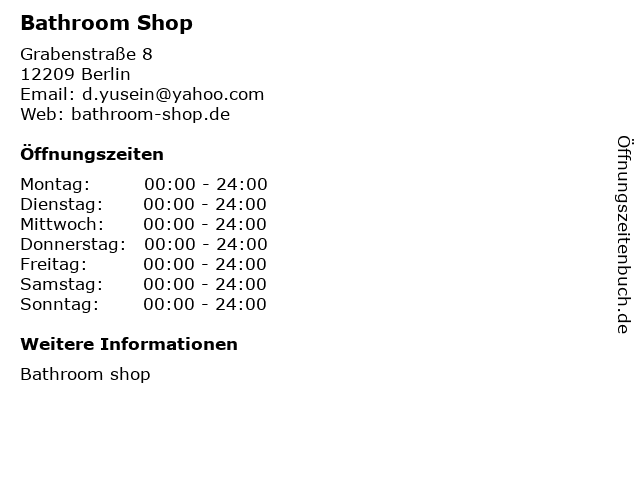 | Öffnungszeiten Bathroom Shop in Berlin anzeigen | |