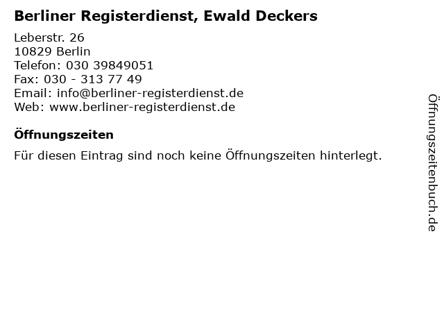 Branchen & Suchbegriffe zu Berliner Registerdienst, Ewald Deckers:berliner, deckers, dienstleistungsunternehmen, ewald, registerdienst, sonstige |