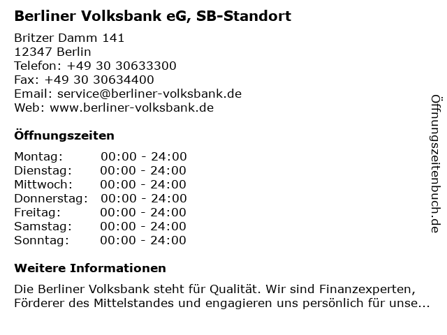 Branchen & Suchbegriffe zu Berliner Volksbank eG, SB-Standort:bank, bausparen, beratung, festgeld, geldautomat, genossenschaft, immobilien, kredit, tagesgeld, versicherung |
