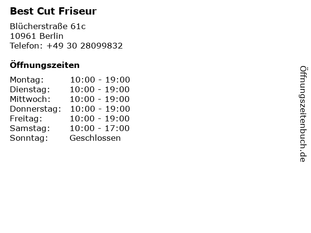 | Öffnungszeiten Best Cut Friseur in Berlin anzeigen | |