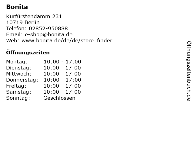 Öffnungszeiten Bonita in Berlin anzeigen | |