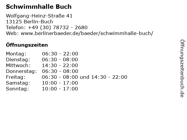 | Öffnungszeiten Schwimmhalle Buch in Berlin-Buch anzeigen | |