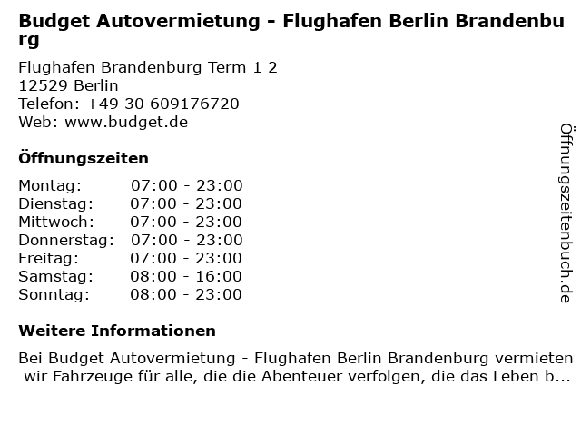 Branchen & Suchbegriffe zu Budget Autovermietung - Flughafen Berlin Brandenburg:7-sitzer mieten, auto langzeitmiete, auto mieten, autovermietung, budget, flughafen, mietwagen, transporter mieten  |
