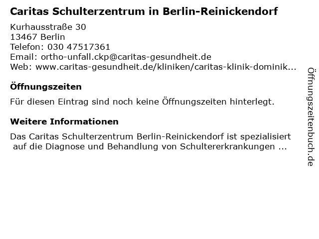 | Caritas Schulterzentrum in Berlin-Reinickendorf anrufen | |