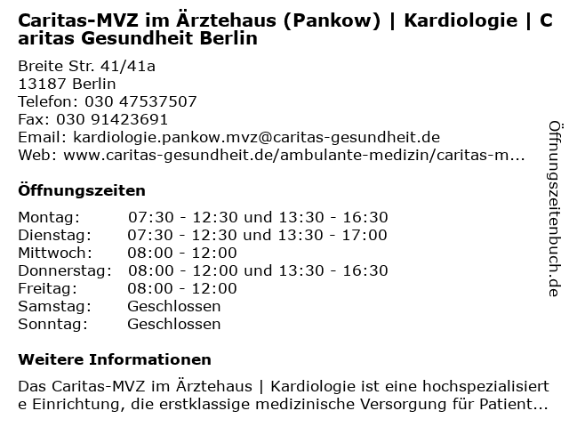Branchen & Suchbegriffe zu Caritas-MVZ im Ärztehaus (Pankow) | Kardiologie | Caritas Gesundheit Berlin:caritas, gesundheit, interventionskardiologie, kardiologie, kliniken, krankenhausarzt, mvz, pankow, ärzte, ärztehaus |