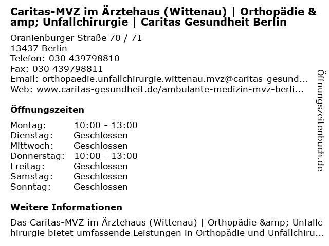 Branchen & Suchbegriffe zu Caritas-MVZ im Ärztehaus (Wittenau) | Orthopädie & Unfallchirurgie | Caritas Gesundheit Berlin:caritas, gesundheit, mvz, orthopädie, unfallchirurgie, wittenau, ärzte, ärztehaus |