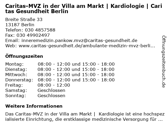 Branchen & Suchbegriffe zu Caritas-MVZ in der Villa am Markt | Kardiologie | Caritas Gesundheit Berlin:caritas, gesundheit, interventionskardiologie, kardiologie, kliniken, krankenhausarzt, markt, mvz, villa, ärzte |