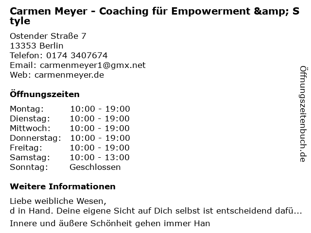 Branchen & Suchbegriffe zu Carmen Meyer - Coaching für Empowerment & Style:carmen, coaching, empowerment, meyer, style |