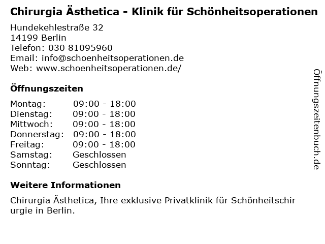 Branchen & Suchbegriffe zu Chirurgia Ästhetica - Klinik für Schönheitsoperationen:chirurgia, klinik, krankenhäuser, schönheitsoperationen, ästhetica |