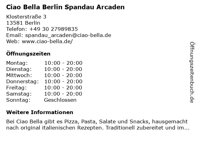 Branchen & Suchbegriffe zu Ciao Bella Berlin Spandau Arcaden:arcaden, bella, ciao, ciao bella, italienische gerichte, mittagessen, pasta, pizza, salate, snacks, spandau, togo, vegetarische speisen |