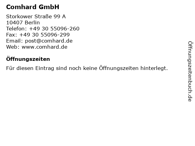 | Öffnungszeiten Comhard GmbH in Berlin anzeigen | |