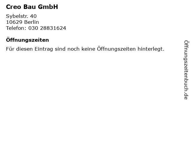 | Öffnungszeiten Creo Bau GmbH in Berlin anzeigen | |