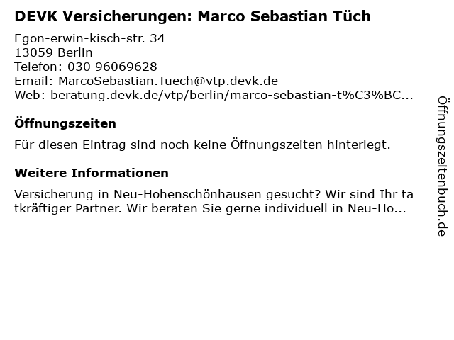 | DEVK Versicherungen: Marco Sebastian Tüch anrufen | |