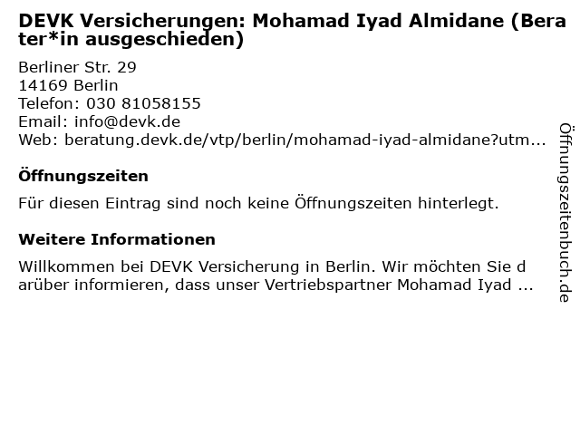 | DEVK Versicherungen: Mohamad Iyad Almidane (Berater*in ausgeschieden) anrufen | |