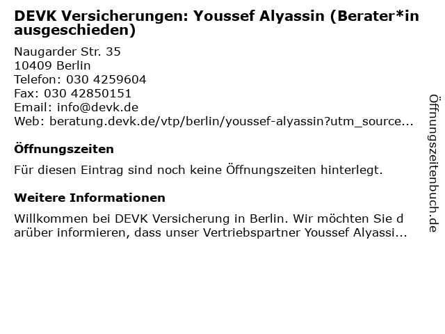 | DEVK Versicherungen: Youssef Alyassin (Berater*in ausgeschieden) anrufen | |
