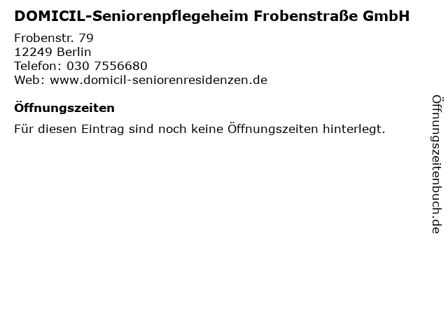 | DOMICIL-Seniorenpflegeheim Frobenstraße GmbH anrufen | |